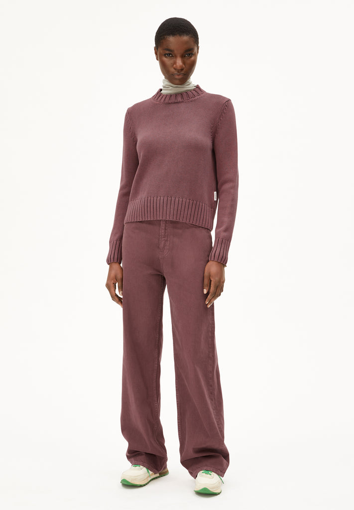 Der Pullover von Armedangels ist dein neuer Kuschel-Pullover, der mit Stil und Verantwortung punktet. Gefertigt aus 100 % Bio-Baumwolle, überzeugt er durch seinen lockeren Schnitt und das GMT-Dye Verfahren, das dem Dunkelbeeren-Ton diese besondere Tiefe verleiht. Ob über Jeans oder als Layer über dein Lieblingsshirt – er bringt Komfort, Wärme und ein Statement: bewusst, urban, alltagstauglich.