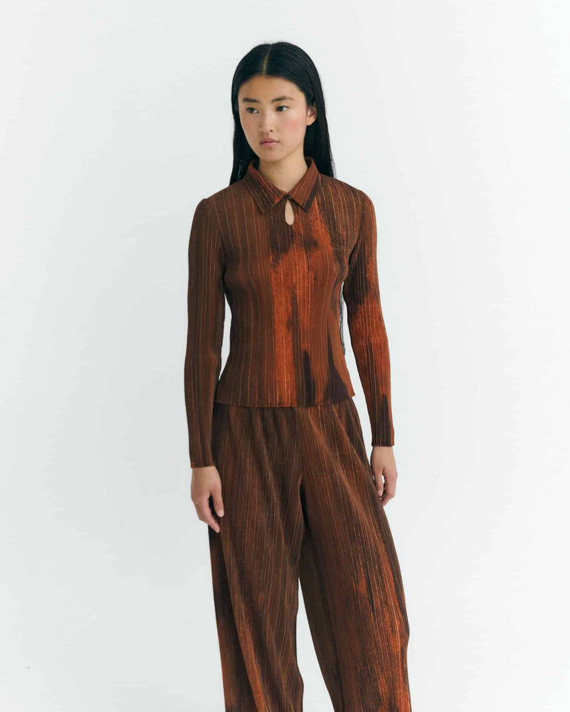 Schlicht, sinnlich und modern: Das Orange Ombré Agostina Top von Thinking Mu begeistert mit seinem warmen Farbverlauf und der feinen Plissee-Struktur. Das dehnbare Crinkle-Material aus 100 % recyceltem Polyester schmiegt sich sanft an den Körper und betont die Silhouette auf natürliche Weise – ganz ohne einzuengen. Ein nachhaltiges Statement-Piece, das Komfort und Stil gekonnt vereint.