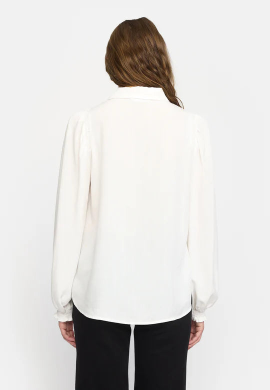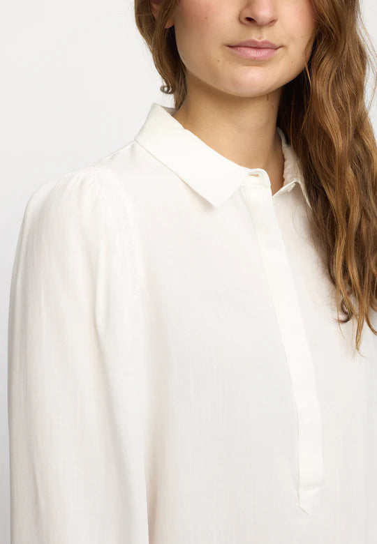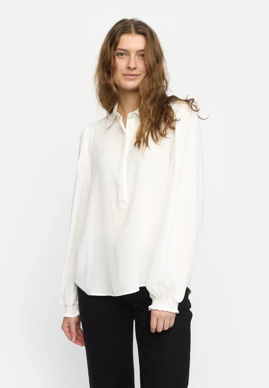 Die Anne Mayson Hemdbluse von Soft Rebels kombiniert klassische Eleganz mit modernen Akzenten. Gefertigt aus 100 % Viskose (LENZING™ ECOVERO™) bietet es einen weichen, atmungsaktiven Tragekomfort. Der Stehkragen und die verdeckte Knopfleiste verleihen dem Shirt eine zeitlose Note, während der lockere Schnitt und die minimalistischen Details einen modernen Twist setzen. Ein vielseitiges Kleidungsstück, das sowohl im Büro als auch in der Freizeit stilvoll überzeugt.