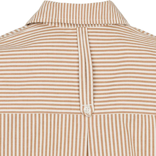 Die Bluse von esmé studios ist dein neues Lieblingsteil für entspannte Tage mit Stil. Hergestellt aus 100 % Bio-Baumwolle (GOTS-zertifiziert), fühlt sie sich nicht nur gut an, sondern steht auch für bewussten Konsum. Der lockere Schnitt, der feine Streifenlook und der klassische Kragen machen sie zum idealen Allrounder – ob fürs Office, den Brunch oder einfach so. Kombinier sie lässig zur Jeans oder elegant zur Stoffhose – easy, bequem, nachhaltig.