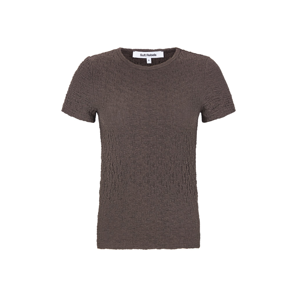 Ein Materialmix made in Heaven! Das kuschelige Shirt im Crinkle Look von Soft Rebels wird dich umarmen wie Travis seine Taylor nach dem Antrag. Braun ist DIE Trendfarbe dieser Saison – warm, vielseitig und natürlich elegant, bringt sie Ruhe und Tiefe in jeden Look. Kombiniere das Top mit einem Blazer, einer Jeans oder einer schicken Stoffhose für einen eleganten Style.