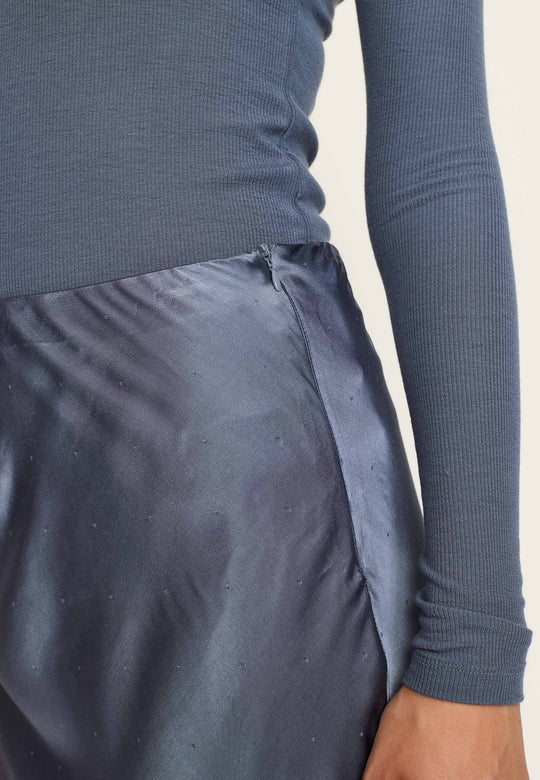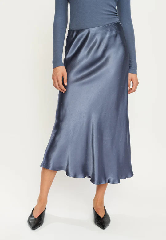 Dieser Rock von Soft Rebels bringt stille Eleganz in deinen Kleiderschrank – weich im Griff, leicht im Fall und doch mit Charakter. Gefertigt aus femininem, fliessendem Stoff, vereint er Komfort und Nachhaltigkeit auf eindrückliche Weise. Sein zurückhaltender Grauton macht ihn zum vielseitigen Begleiter – tagsüber kombiniert mit einem simplen Sweater und Sneakers, abends mit einer Bluse und Heels wird er zum edlen Blickfang. Die feine Taille legt sich sanft an ohne einzuengen, der Schnitt schmeichelt der Figur und schenkt Bewegungsfreiheit. Ein Rock, der Stilbewusstsein zeigt und sich mühelos in jeden Moment des Tages einfügt – für all jene, die Mode leben möchten, ohne sich zu verstellen.