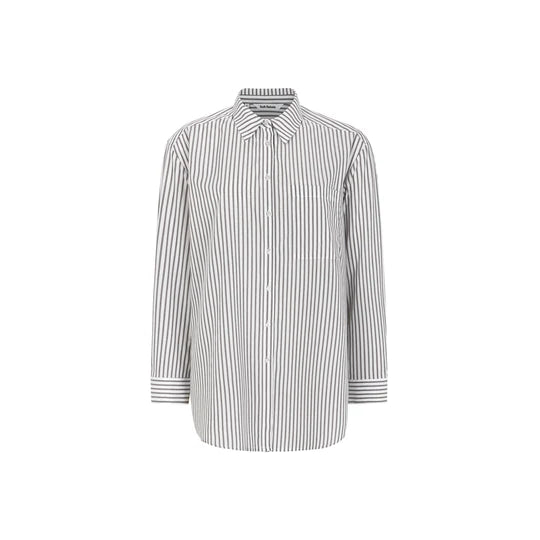 Die Hemdbluse von Soft Rebels vereint Tradition und modernen Stil auf elegante Weise. Mit langen Ärmeln, einem klassischen Kragen und einer durchgehenden Knopfleiste ist es ein unverzichtbares Basic für jede Garderobe. Die nach vorne verlegten und leicht abgesenkten Schultern verleihen dem Hemd eine entspannte Passform, die dennoch raffiniert wirkt.