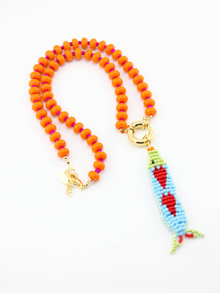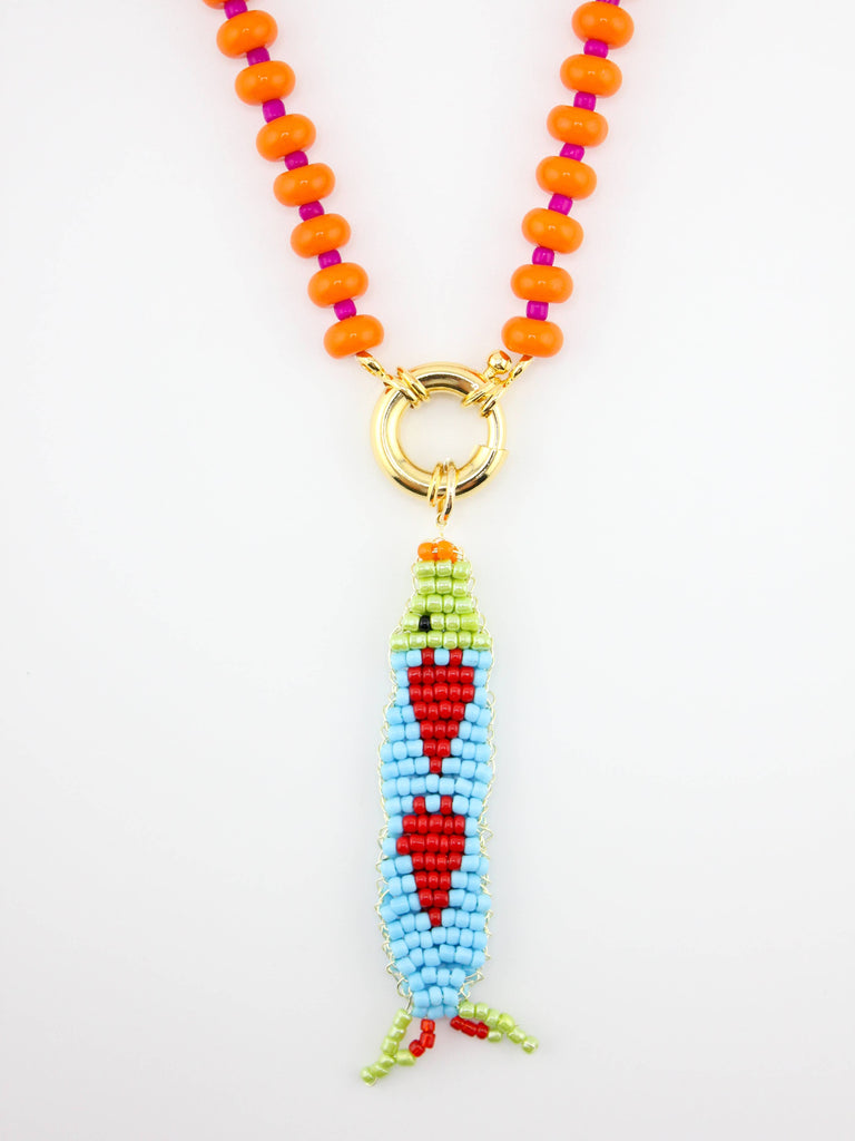 Die Pez del Sol Halsketten von unserem neuen Brand Cara O Sello sind dein perfekter Begleiter für den Sommer. Hergestellt aus leuchtenden Glasperlen und einem handgefertigten Fischanhänger bringen sie das Gefühl von sonnenverwöhnten Tagen, Küsten und Spass direkt zu dir. Der goldene Knebelverschluss verleiht der Kette Wertigkeit und der Talismann steht dir beschützend zur Seite. Wähle aus vier Farben, inspiriert von tropischen Inseln, goldenen Sonnenstunden, Festivals und bunten Lagunen. Trage sie solo für einen coolen Look oder kombiniere sie mit deinen Strandoutfits – perfekt für den Sommer!